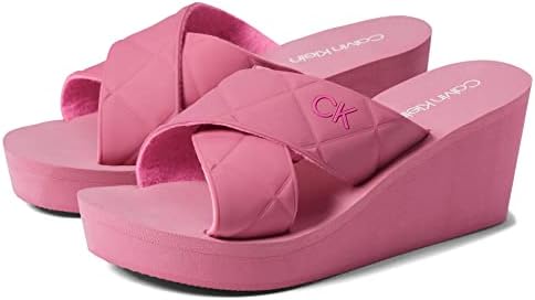 Wear Rhena wedge sandals, look new style. This PVC sandal comes with two cross straps, stylish quilted details and a Calvin Klein monogram on the upper.
