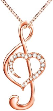 MD JEWELS 1.00 carat round cut diamond Ladies Heart treble Clef necklace Note Pendant 14k rose gold finish